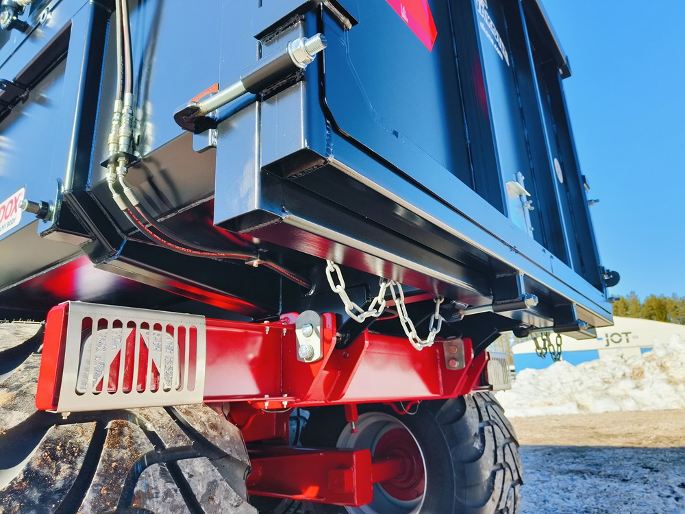 Lastkanten behöver inga stödbågar. Den egna bakre lastkanten är i en och samma mått och har egna cylindrar. Detta ger ett bra fritt utrymme över lastkanten. Till exempel får man lätt ut en överlast av snö, och mellanstängerna stör inte lastningen.