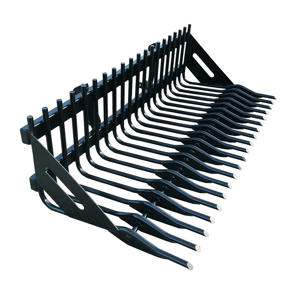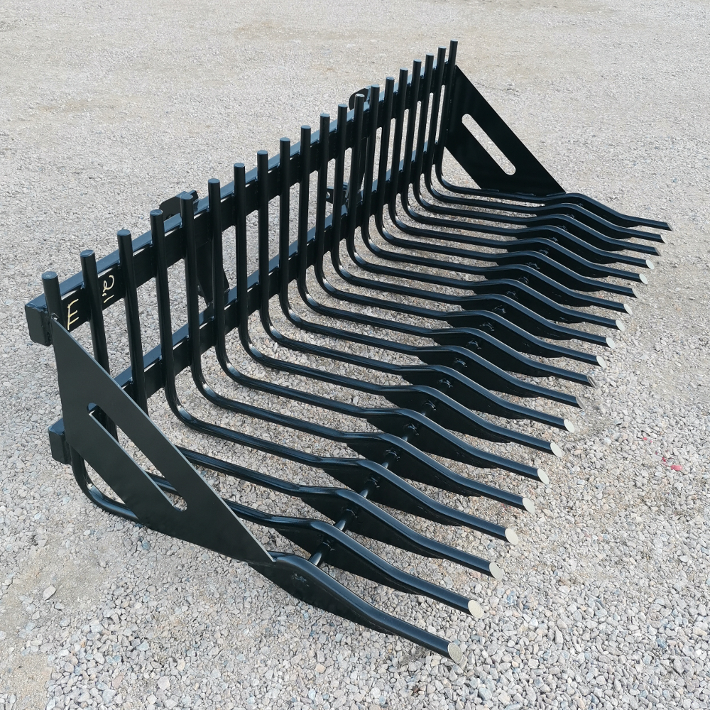 Framkantens puckel förhindrar att stenarna ramlar ut ur grepen och den avsmalnande spetsen underlättar lastningen.